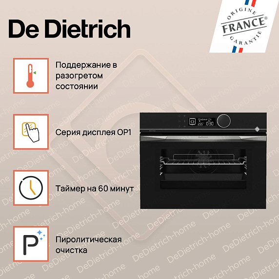 De Dietrich DKP4531X — это встраиваемый духовой шкаф, разработанный для пользователей, ценящих сочетание надежности, функциональности и современного дизайна. Модель выполнена в черном цвете с фасадом из закаленного стекла, что придает устройству строгий и лаконичный внешний вид. Такой дизайн позволяет органично вписать технику в любой кухонный интерьер.