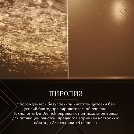 Пиролитическая очистка духового шкафа использует высокую температуру для сжигания жира и остатков пищи, превращая их в пепел. Этот метод очистки значительно упрощает уход за устройством, позволяя сэкономить время и усилия. Пиролитическая система работает автоматически, устраняя необходимость в использовании химических средств и обеспечивая глубокую чистоту без усилий со стороны пользователя.