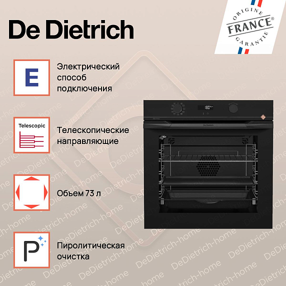 De Dietrich DOP4335H — воплощение элегантности и функциональности в современной кухне. Французское происхождение и принадлежность к серии Philharmonie подчеркивают внимание к деталям и высочайшее качество исполнения. Черный цвет корпуса, гармонирующий с такой же фурнитурой, создает утонченный и лаконичный облик, который легко впишется в любой интерьер. Габариты прибора позволяют интегрировать его в нишу стандартного размера, а плавное закрытие дверцы Soft-close обеспечивает дополнительный комфорт при эксплуатации. Четыре стекла дверцы и технология холодной поверхности гарантируют безопасность даже при интенсивном использовании. Встроенное галогенное освещение позволяет визуально контролировать процесс приготовления, не открывая дверцу, что сохраняет тепло и энергоэффективность.