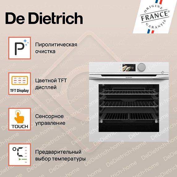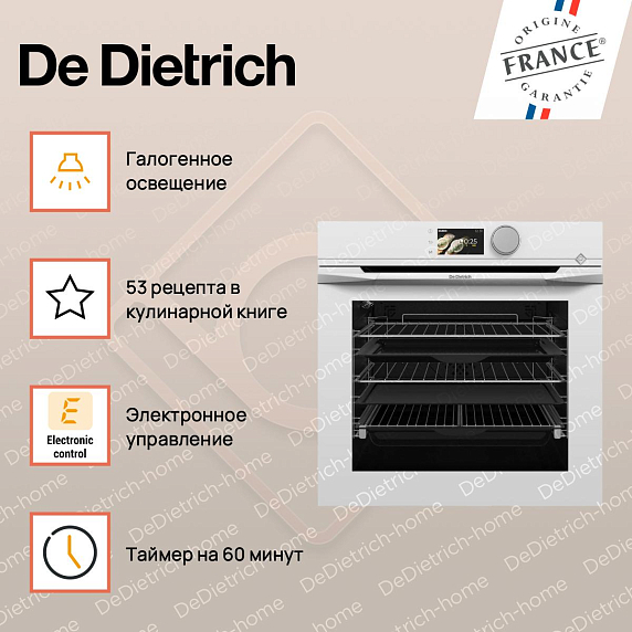 De Dietrich — это французский бренд, давно завоевавший доверие благодаря сочетанию передовых технологий, безупречного качества и лаконичного дизайна. Модель DOP4756W — это электрический встраиваемый духовой шкаф, созданный для тех, кто ценит точное приготовление, комфорт в использовании и долговечность материалов.