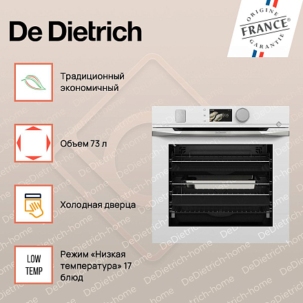 Шкаф De Dietrich DOR4747W обладает вместительным объемом 73 литра и оснащен галогенным освещением. Его дверца с плавным закрыванием обеспечивает безопасность и комфорт в использовании. К тому же, прибор имеет класс энергопотребления A+, что делает его энергоэффективным и экономичным.