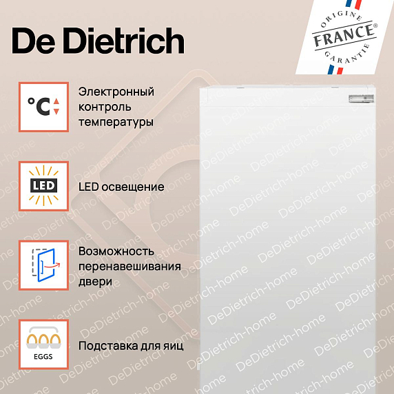 Встраиваемый холодильник De Dietrich DRL1247ES — это сочетание инновационных технологий, и высокого качества. Это устройство воплощает в себе идею удобства и функциональности, являясь прекрасным выбором для современной кухни.