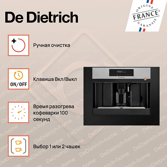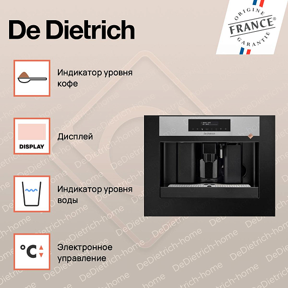 Кофемашина De Dietrich DKD7400XB обеспечивает высокое качество приготовления кофе и удобство использования. С этим прибором каждый день можно наслаждаться вкусным и ароматным кофе, не выходя из дома.