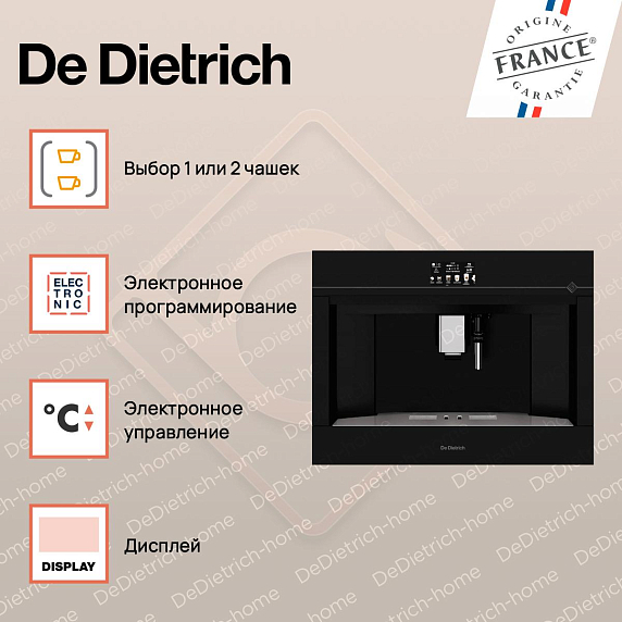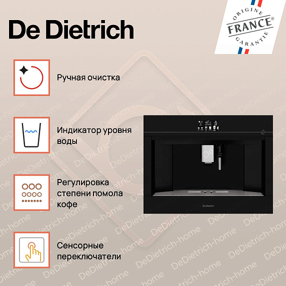 Встраиваемая кофемашина De Dietrich DKD4810H — это элегантное и функциональное устройство, которое станет незаменимым помощником для любителей кофе. Уникальный дизайн, высокое качество и продуманные функции делают ее идеальным выбором для современной кухни.