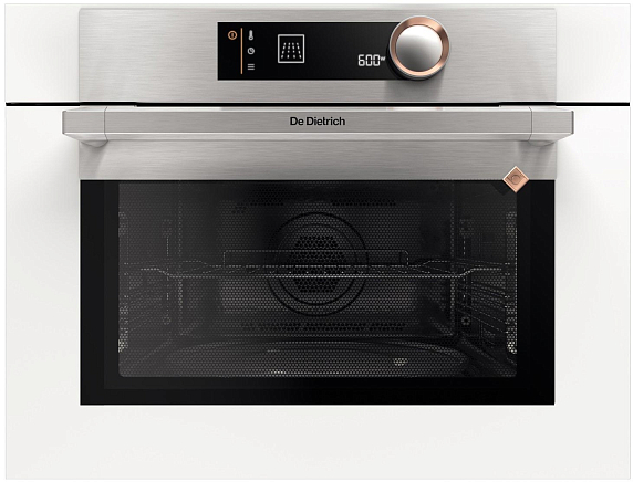 Микроволновая печь De Dietrich DKE7335W представлена в белом цвете. Объем камеры составляет 40 л. Диаметр съемной вращающейся подставки равен 36 см. Устройство имеет 4 автоматических программ и 10 настроек мощности. Которые вы можете варьировать в зависимости от вида и объема продукта. Дополнительно в память микроволновки можно внести три рецепта. Система Quattro представляет собой своего рода функцию конвекции, которая позволит получить выпечку, не уступающую по вкусовым качествам духовой.