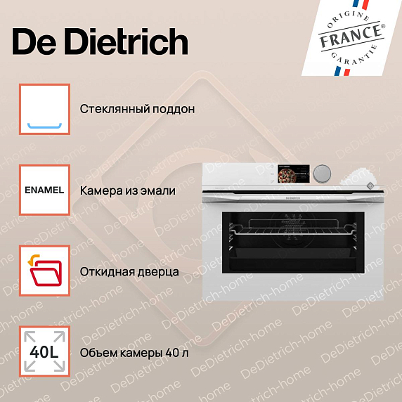 Встраиваемая микроволновая печь De Dietrich DKC4756W — это элегантный и функциональный прибор, который станет незаменимым помощником на вашей кухне. Ее дизайн воплощает в себе идеальное сочетание модерна и классики, что позволяет ей гармонично вписаться в любой интерьер. Белый цвет корпуса придает ей изысканность и легкость, а зеркальное стекло дверцы добавляет нотки роскоши. Эта модель не только впечатляет своим внешним видом, но и поражает своими техническими характеристиками.