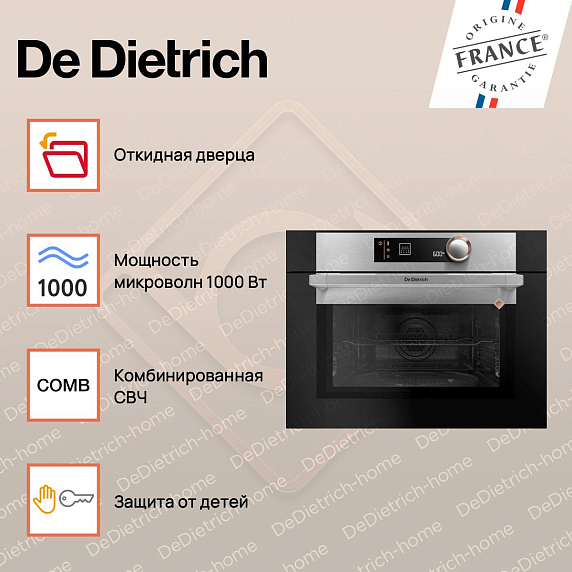 Встраиваемая микроволновая печь De Dietrich DKC7340X сочетает в себе элегантный дизайн и передовые технологии. Она станет незаменимым помощником на кухне, обеспечивая быстрый и равномерный нагрев продуктов. Модель выполнена в стильном черном цвете с элементами из нержавеющей стали, что придает ей современный и привлекательный внешний вид.
