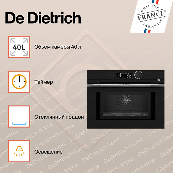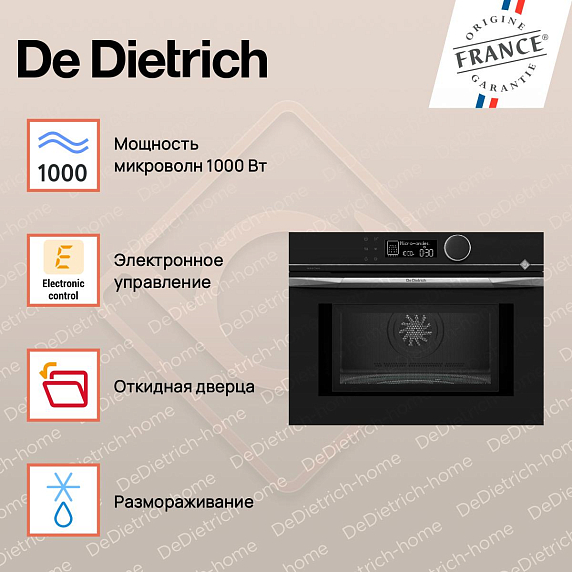 Встраиваемая микроволновая печь De Dietrich DKE4535X станет идеальным выбором для тех, кто ценит не только функциональность, но и стиль в своей кухне. Эта модель отличается своим современным дизайном, выполненным в черном цвете, что придает ей особый шик и элегантность. Ручка, выполненная из нержавеющей стали, не только подчеркивает общий стиль, но и обеспечивает удобство использования.