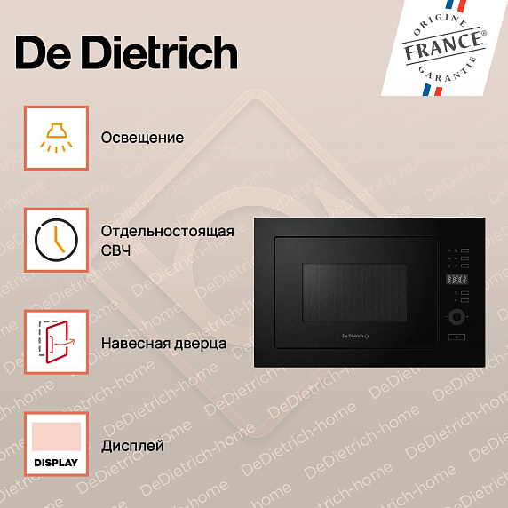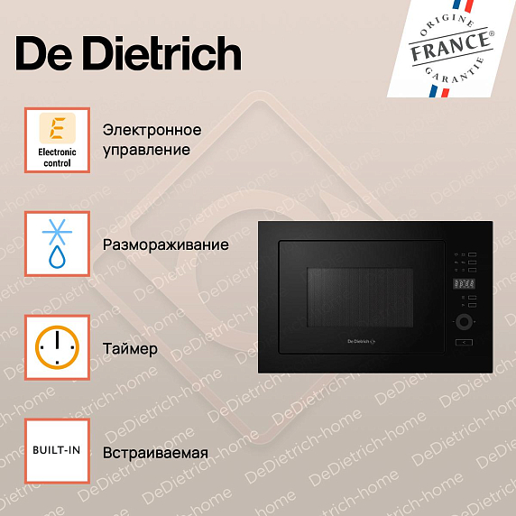 Встраиваемая микроволновая печь De Dietrich DMG2122A является высококачественным продуктом, произведенным во Франции. Это изделие из коллекции Philharmonie, которая славится своими превосходными техническими характеристиками и стильным дизайном. Эта модель обладает электронным управлением, что делает ее использование максимально удобным и простым. Сенсорные переключатели и дисплей обеспечивают легкость в настройке и контроле процесса приготовления.