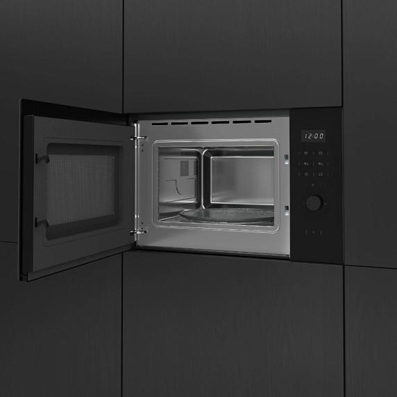 Встраиваемая микроволновая печь De Dietrich DMG4210MB представлена как гармоничное сочетание строгой эстетики и продуманной функциональности; этот прибор из коллекции Philharmonie и серии INFINITE BLACK (PHILHARMONIE) выполнен в глубоком черном матовом цвете с матовой фурнитурой, что делает его идеальным решением для стильной кухни. Корпус и панель оформлены с акцентом на минимализм, а навесная дверца открывается плавно, обеспечивая удобный доступ к внутренней камере объемом 25 литров, облицованной нержавеющей сталью для долговечности и легкой очистки. Электронное управление с информативным дисплеем и поворотными сенсорными переключателями обеспечивает точный выбор режима и параметров приготовления, а за счет интуитивной логики интерфейса вы быстро освоите все функции даже при минимальном опыте обращения с техникой.