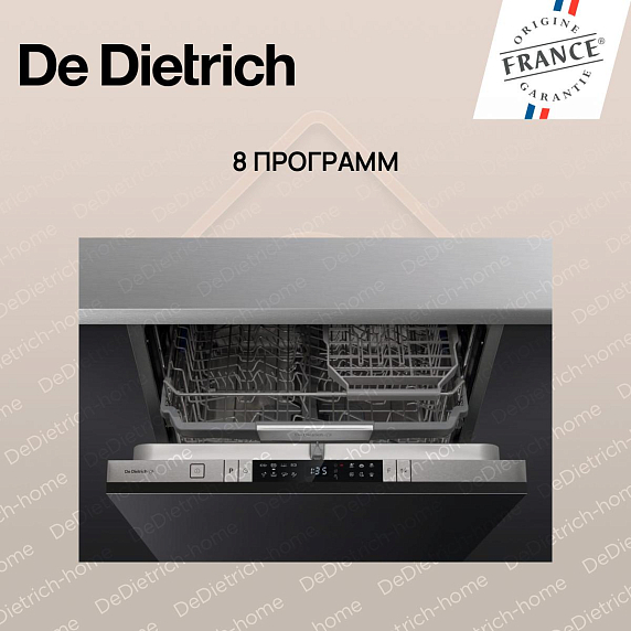 Встраиваемая посудомоечная машина De Dietrich DCJ422QSX обладает элегантным дизайном, который подходит к любому интерьеру. Вместимость составляет 14 комплектов посуды, благодаря чему она будет отличным выбором для большой семьи. Электронное управление и цифровой дисплей обеспечивают комфортное и понятное управление. Уровень шума составляет всего 42 дБ — устройство работает очень тихо.