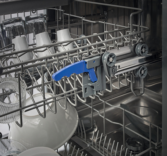 Регулируемая по высоте верхняя корзина позволяет настроить пространство внутри машины под разные размеры посуды. Это дает возможность подстраивать устройство под личные нужды, например, для мытья высоких стаканов или больших кастрюль. Такая функция повышает гибкость и удобство, улучшая эффективность мойки при любом типе загрузки.