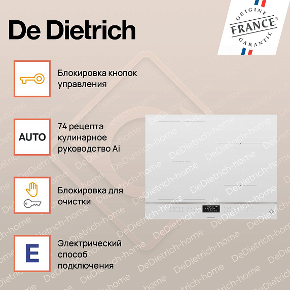 De Dietrich DPI4431W — это индукционная встраиваемая варочная поверхность, созданная для тех, кто ценит точную регулировку нагрева, высокую производительность и современный дизайн. Модель предлагает широкий функционал, экономное потребление энергии и эстетически привлекательное оформление, что делает её универсальным решением для кухни любого формата.
