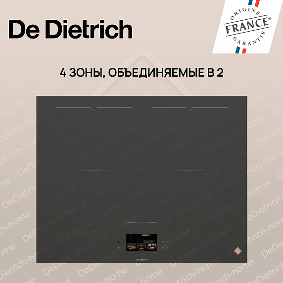 Индукционная варочная панель De Dietrich DPI4450G представляет собой образец передовых технологий и французского инженерного мастерства, сочетающий элегантный внешний вид, эргономику и функциональность. Это устройство создано для тех, кто ценит скорость, точность и комфорт в процессе приготовления пищи. Производство осуществляется во Франции, что гарантирует высокий стандарт качества и надежность всех компонентов.
