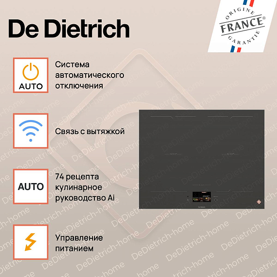 Модель De Dietrich DPI4450G демонстрирует высокий уровень безопасности. Помимо стандартной защиты от перегрева и перелива, система автоматически отключает зону нагрева при снятии посуды. Это позволяет избежать лишних энергозатрат и делает использование панели абсолютно безопасным.
