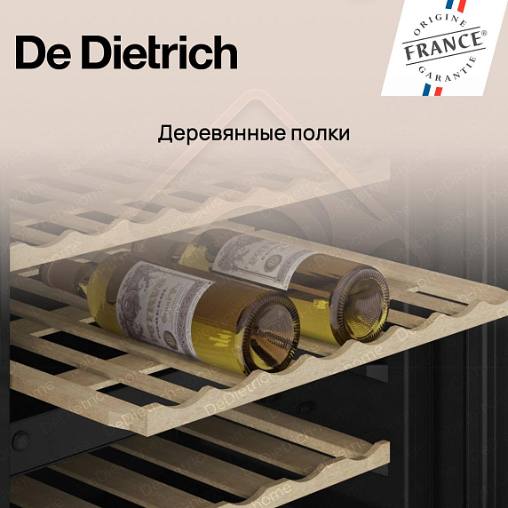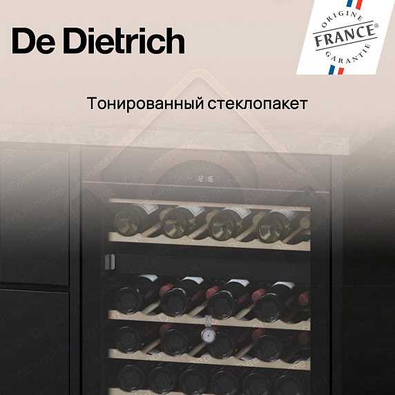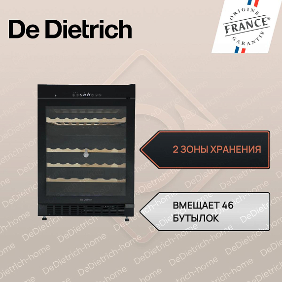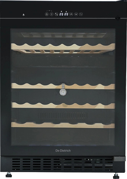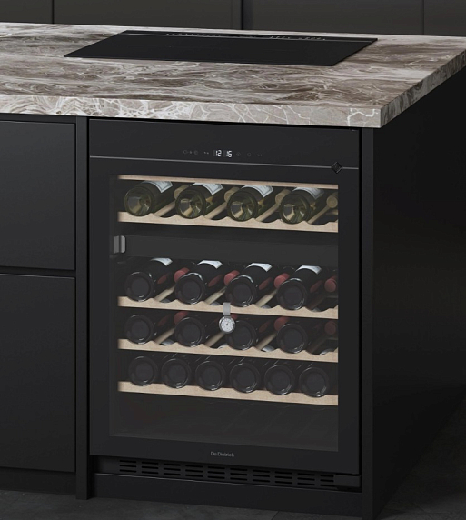 Встраиваемый винный шкаф De Dietrich DUW46DFB — это изысканное сочетание французских традиций и современных технологий, созданное для истинных ценителей вина. Прибор из коллекции Philharmonie выполнен в элегантном черном цвете, который гармонично впишется в любой интерьер кухни или гостиной. Высота корпуса составляет 82 см при ширине 59,5 см и глубине 57 см, что позволяет интегрировать его в стандартную нишу размером 82,5 х 60 х 57,5 см. Внешний вид подчеркивает стильная дверь из тонированного стеклопакета, которая не только защищает содержимое от ультрафиолетовых лучей, но и придает устройству особую утонченность. Внутреннее освещение мягко подсвечивает коллекцию, делая каждую бутылку заметной и доступной.
