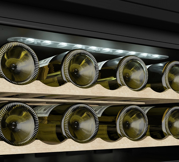 - Две независимых температурных зоны позволяют хранить разные сорта вина в оптимальных условиях.