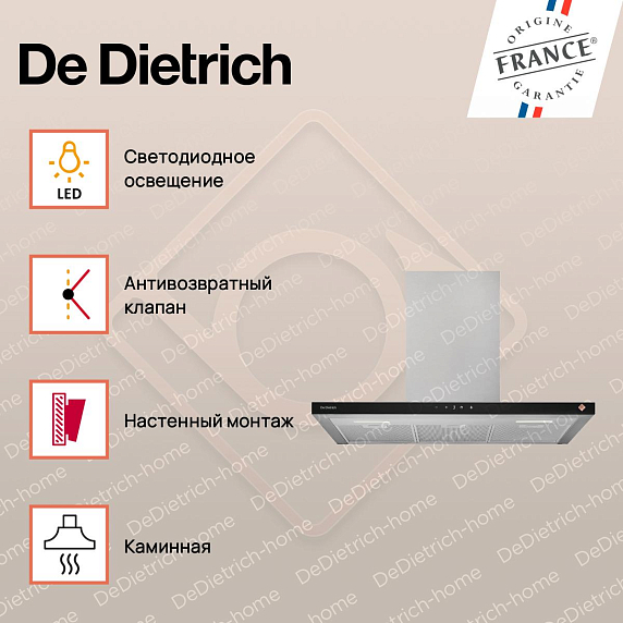 Вытяжка De Dietrich DHB391BX – это современное и функциональное решение для кухни, которое сочетает в себе элегантный дизайн и высокую эффективность работы. Стильное черное исполнение придает модели нотки роскоши, а утонченные линии и минималистичная форма позволяют ей идеально вписаться в любой интерьер.