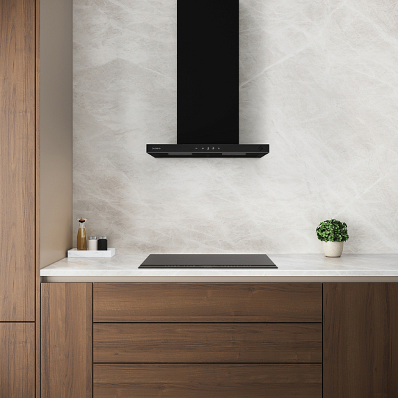 Каминная вытяжка — это эффектное и стильное решение, которое становится центральным элементом интерьера. Ее установка над варочной поверхностью позволяет эффективно и быстро очищать воздух от запахов и дыма. Такой тип вытяжки часто имеет выразительный внешний вид и может служить не только функциональным, но и декоративным элементом кухни, придавая ей элегантность и индивидуальность.