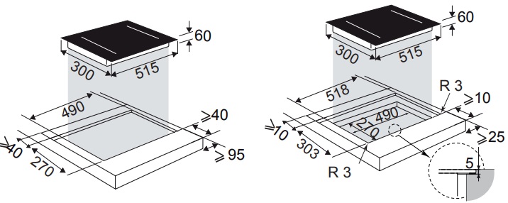 Схема встраивания для варочной панели De Dietrich DPI4220H
