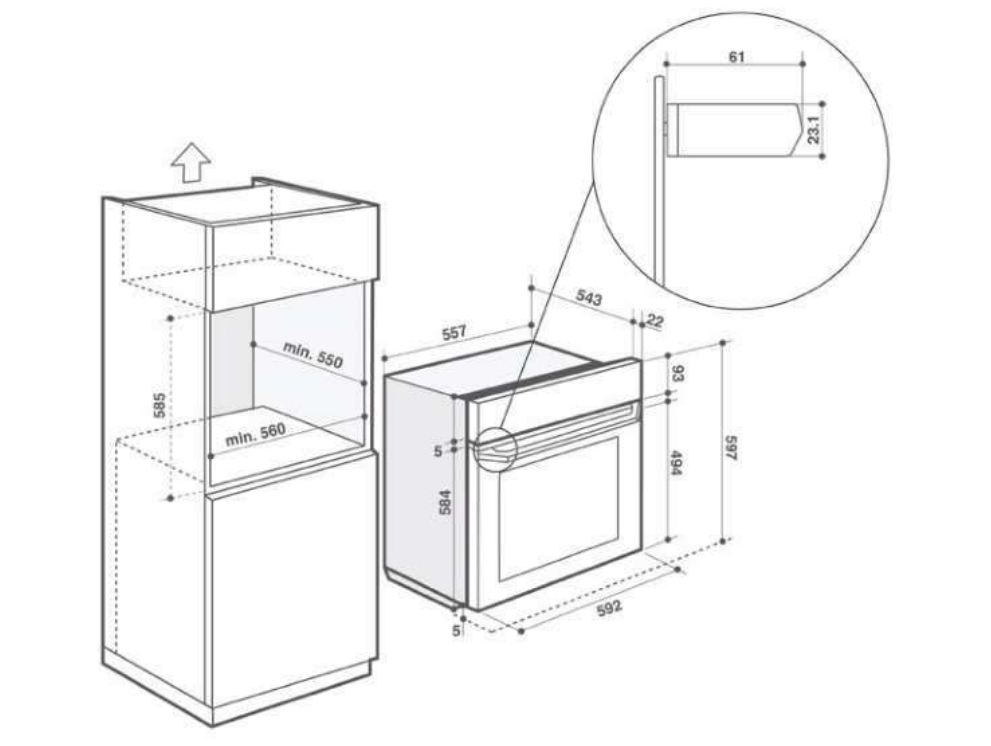 Схема встраивания для духового шкафа De Dietrich DOH4334B