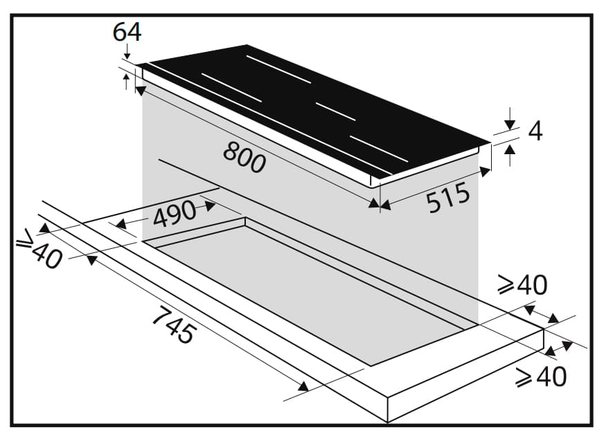 Схема встраивания для варочной панели De Dietrich DPI7884XS